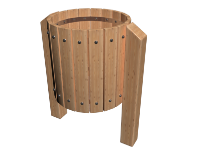 Papelera, de 50x30x80 cm y 26 litros de capacidad, con cuerpo de madera, colocación con taco químico, arandela y tornillo. | ||