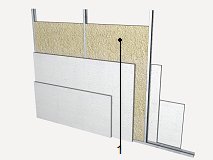 Aislamiento térmico intermedio en muro divisorio de placas, con panel semirrígido de lana mineral, espesor 45 mm, colocado entre los montantes de la estructura portante. | ||