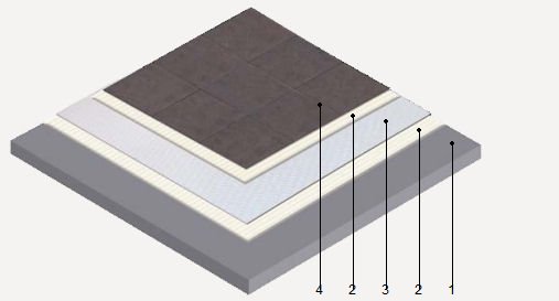 | Desolidarización bajo piso cerámico o de piedra natural, con láminas de elastómero de celdas cerradas | ||
