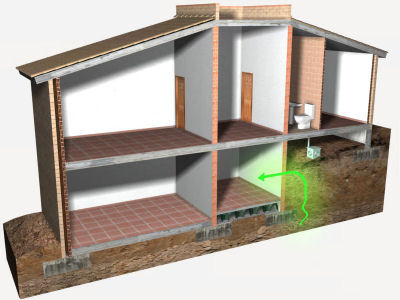 | Barrera de protección frente al radón en muro de hormigón en contacto con el terreno, por su cara exterior, con complejos multicapa | ||