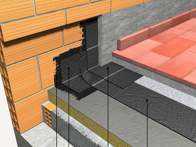 | Encuentro de cubierta plana transitable, no ventilada con paramento vertical. Impermeabilización con láminas asfálticas | ||